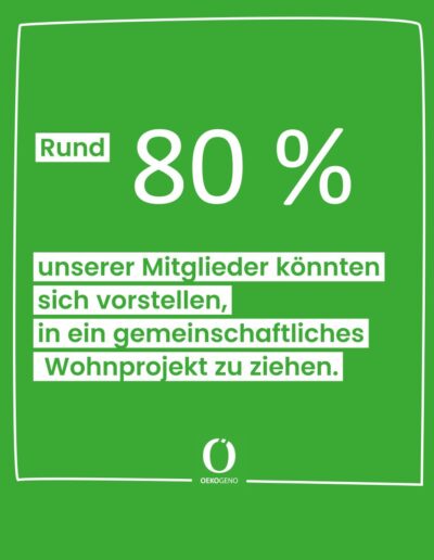 - Über 80 % der Umfrageteilnehmenden können sich vorstellen, in ein gemeinschaftliches Wohnprojekt zu ziehen (klares Ja oder Ja unter Bedingungen).